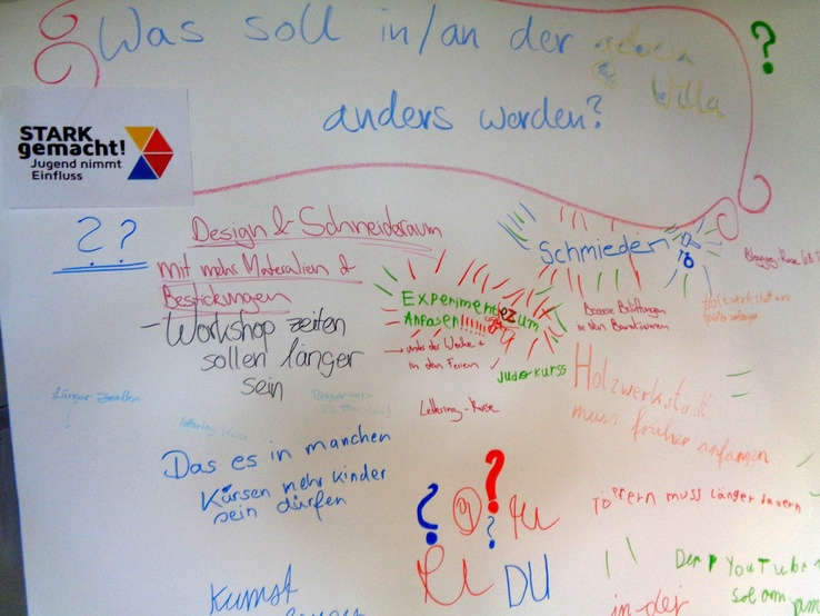 Demokratie verstehen, gestalten und somit aktiv in der Gesellschaft mitbestimmen - das waren die Ziele dieses einjährigen Pilotprojekts für Kinder und Jugendliche im Alter von sechs bis 14 Jahren. Die gelbe Villa aktivierte die Projektbeteiligten und förderte frühzeitig deren Politikverständnis und eine positive Einstellung zu demokratischen Entscheidungsprozessen durch die Schaffung konkreter neuer Beteiligungsstrukturen im Kreativ- und Bildungszentrum.